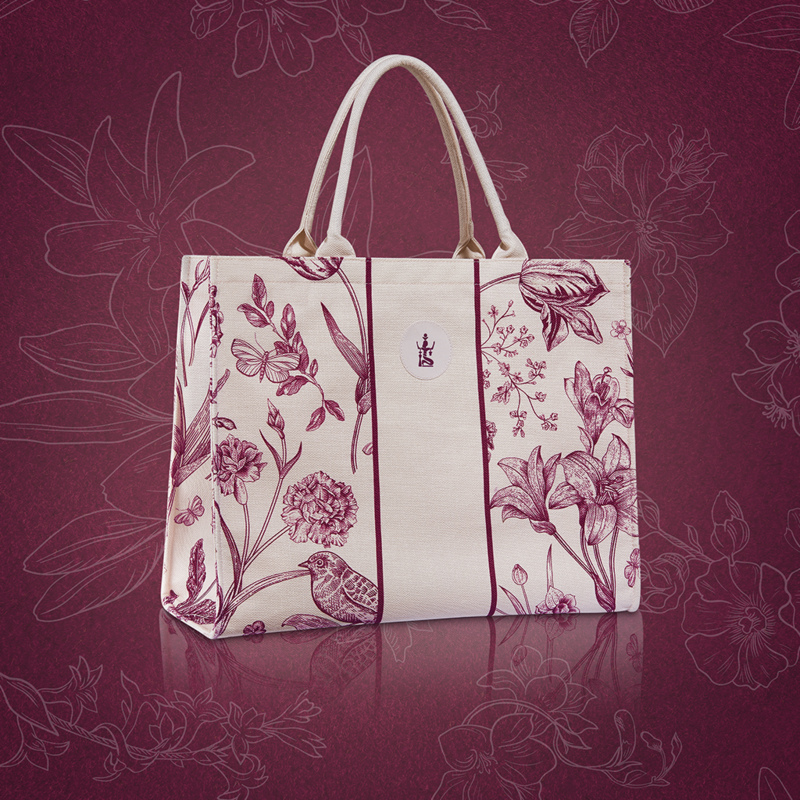 Fall for this burgundy and beige printed bag, an ultra-trendy plant spirit!